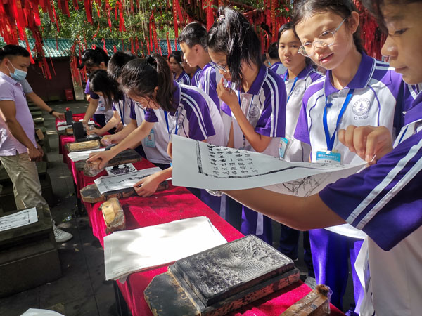同學(xué)們?cè)隗w驗(yàn)我國四大發(fā)明之一印刷術(shù)