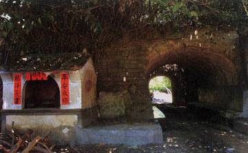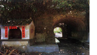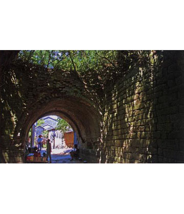 鎮(zhèn)海門即為西門,建造結構基本與武定門相同,呈前、后雙層門結構,其外用磚石混筑切成加固、門呈拱形,部分青磚上雕刻卷草紋。